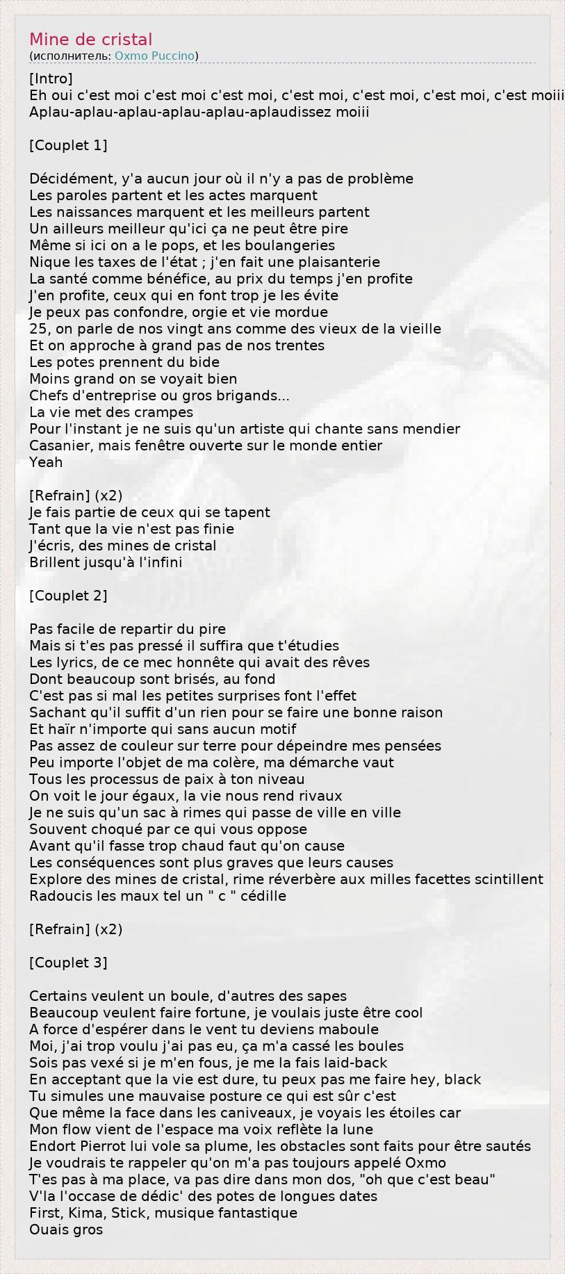 А как ты думаешь, о чем песня "Mine de cristal" ?