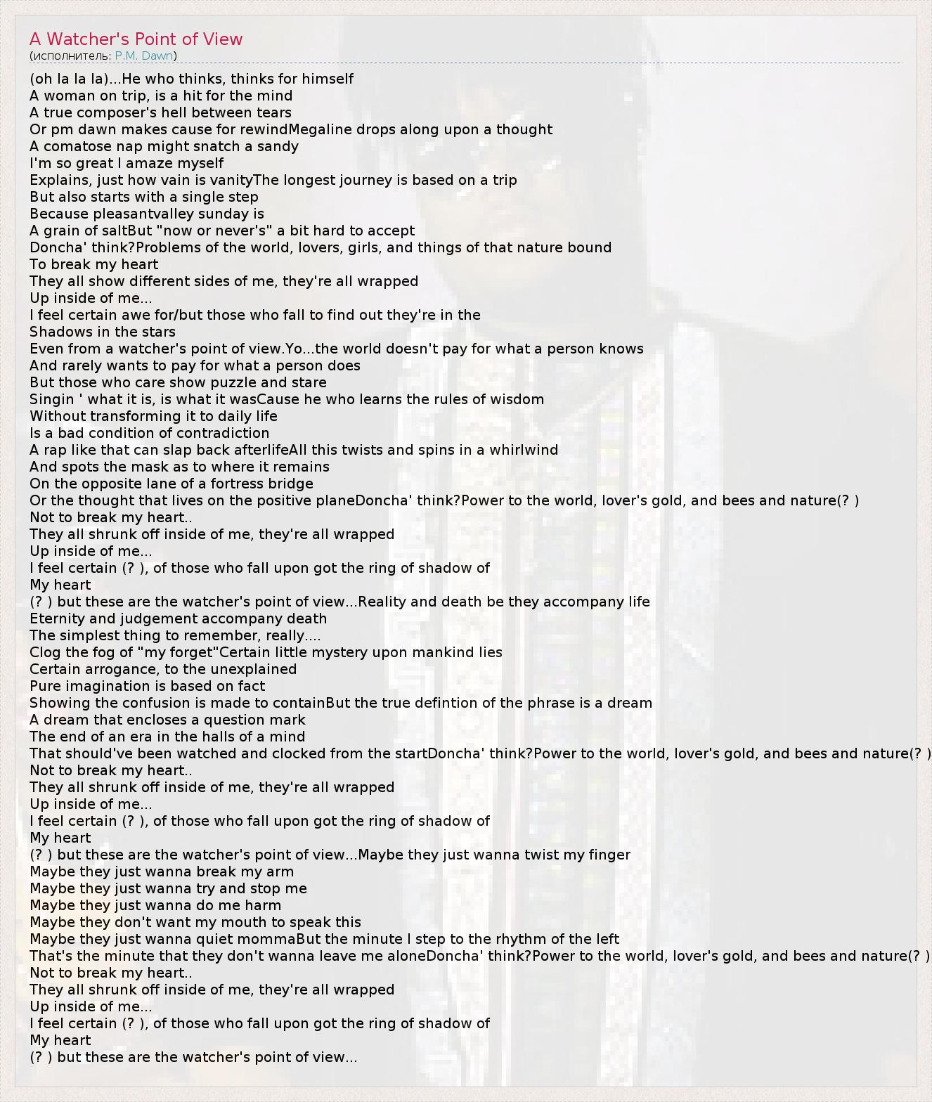 А как ты думаешь, о чем песня "A Watcher's Point of View" ?