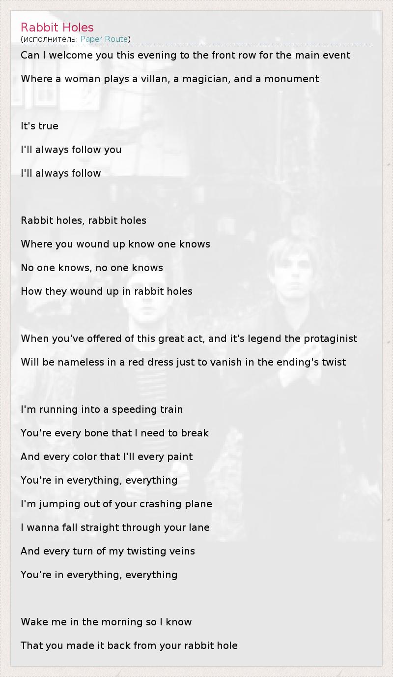 А как ты думаешь, о чем песня "Rabbit Holes" ?