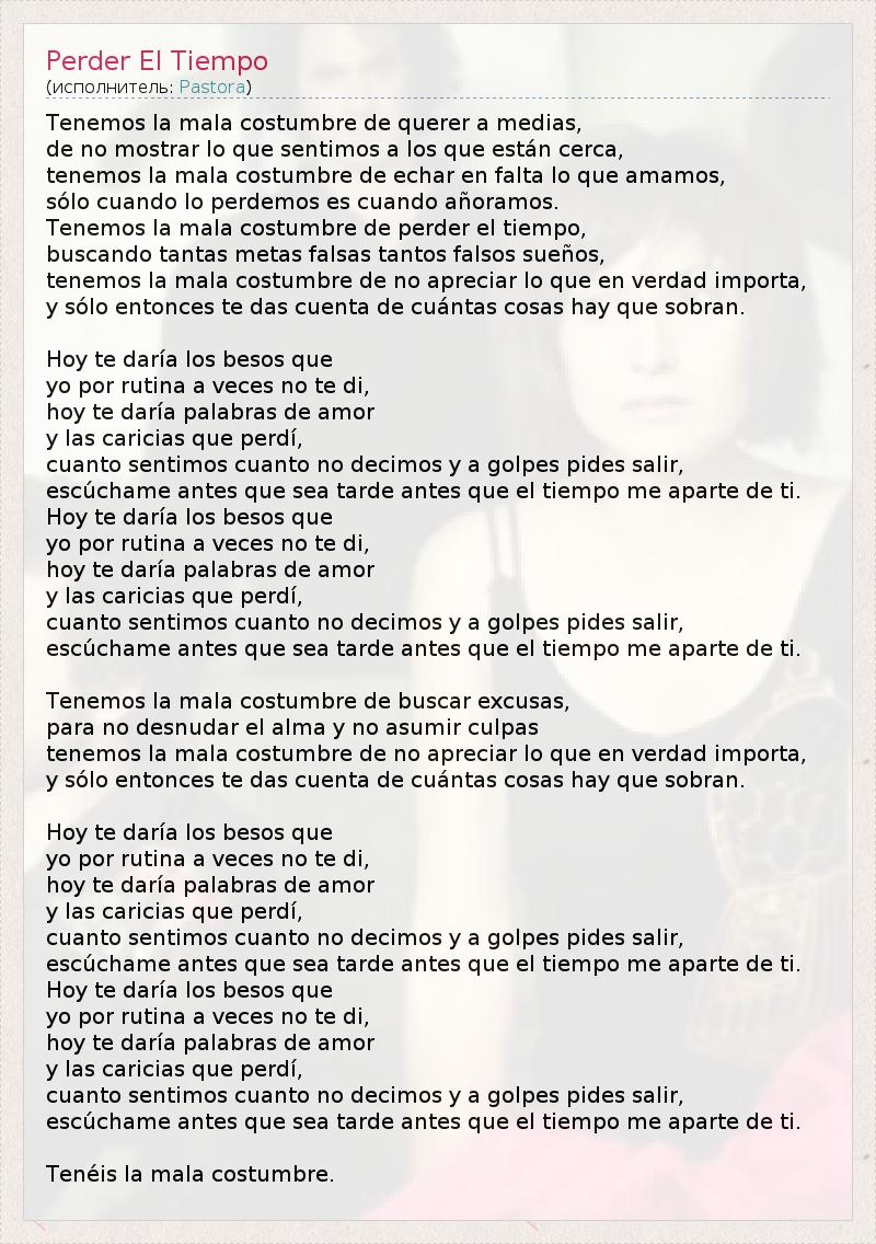 А как ты думаешь, о чем песня "Perder El Tiempo" ?