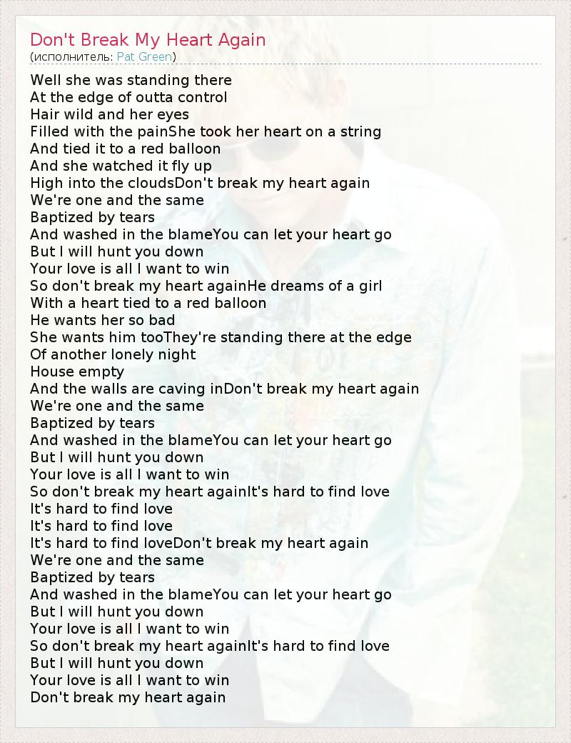 ГлавнаяИсполнителиPat GreenDon't Break My Heart Again