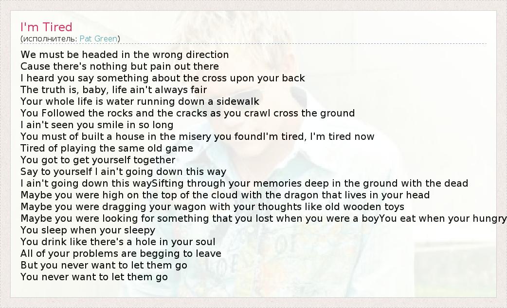 А как ты думаешь, о чем песня "I'm Tired" ?