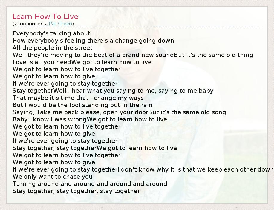 А как ты думаешь, о чем песня "Learn How To Live" ?