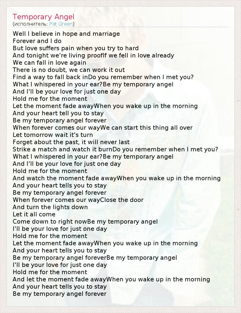 А как ты думаешь, о чем песня "Temporary Angel" ?