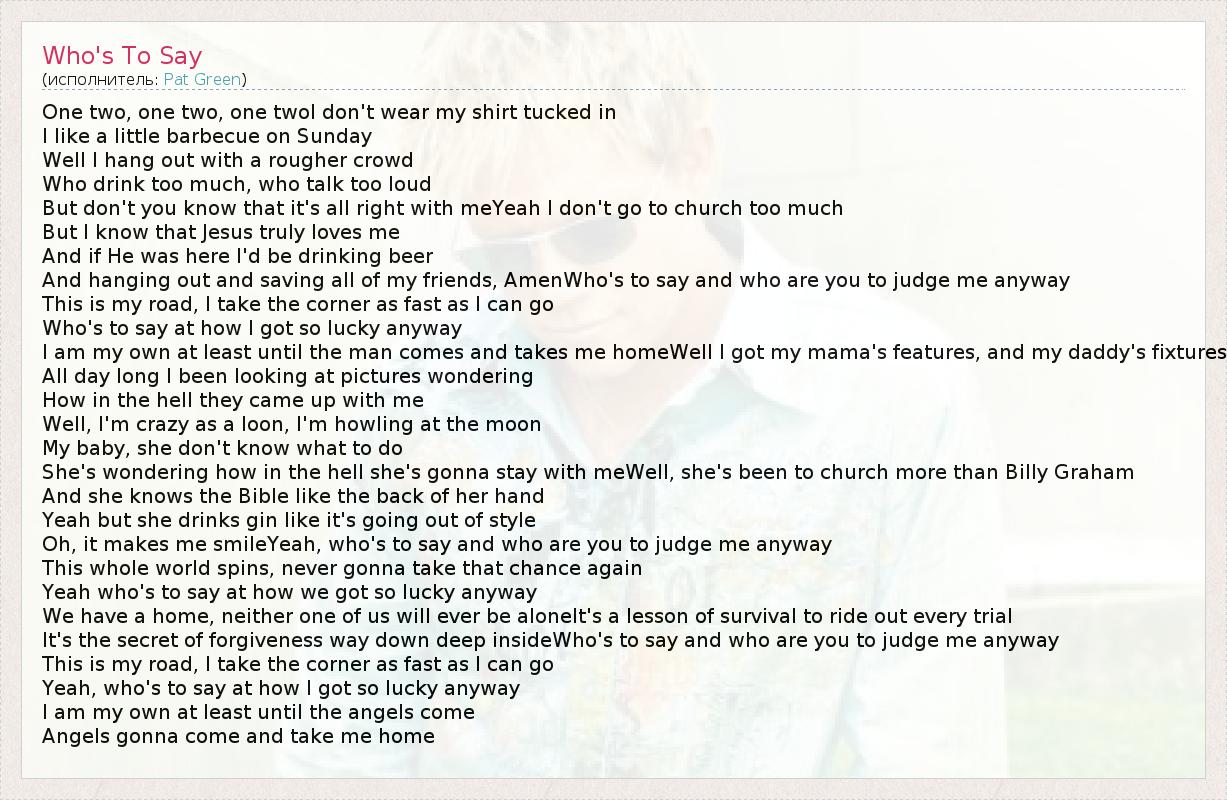 А как ты думаешь, о чем песня "Who's To Say" ?