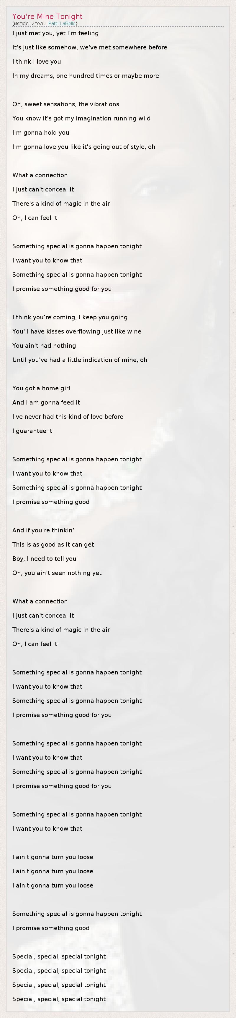 А как ты думаешь, о чем песня "You're Mine Tonight" ?