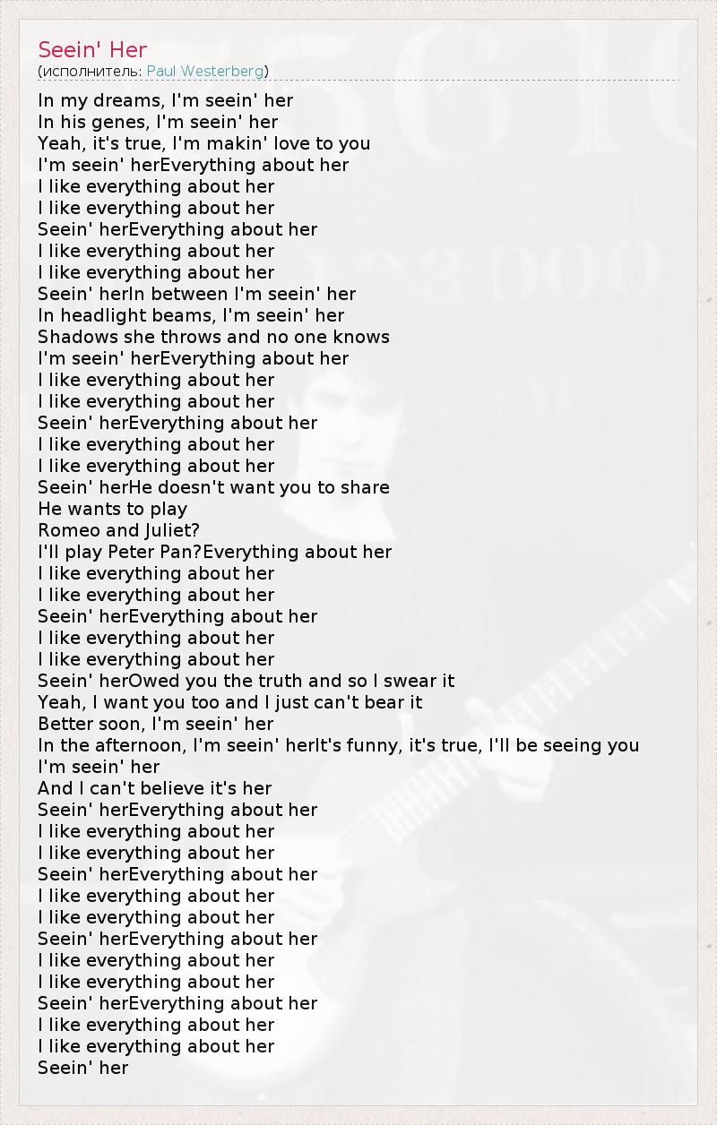 А как ты думаешь, о чем песня "Seein' Her" ?