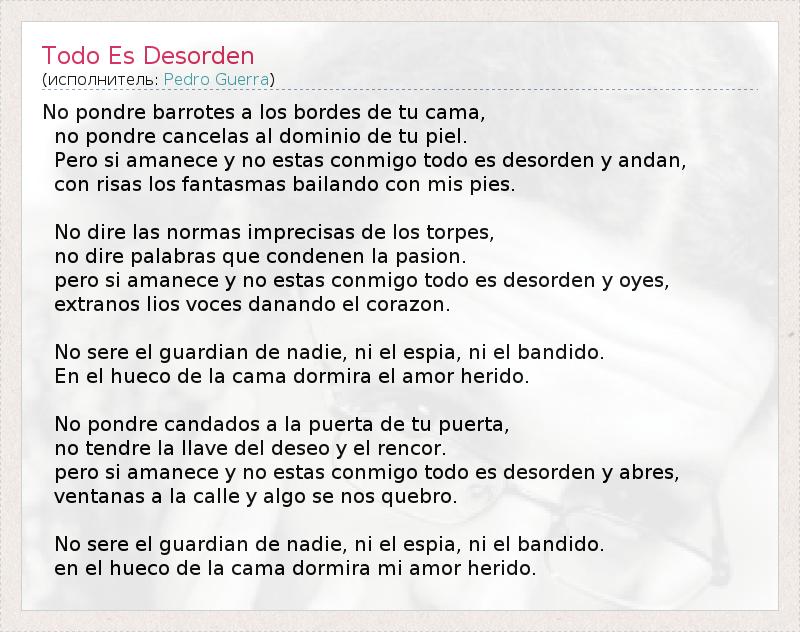 А как ты думаешь, о чем песня "Todo Es Desorden" ?