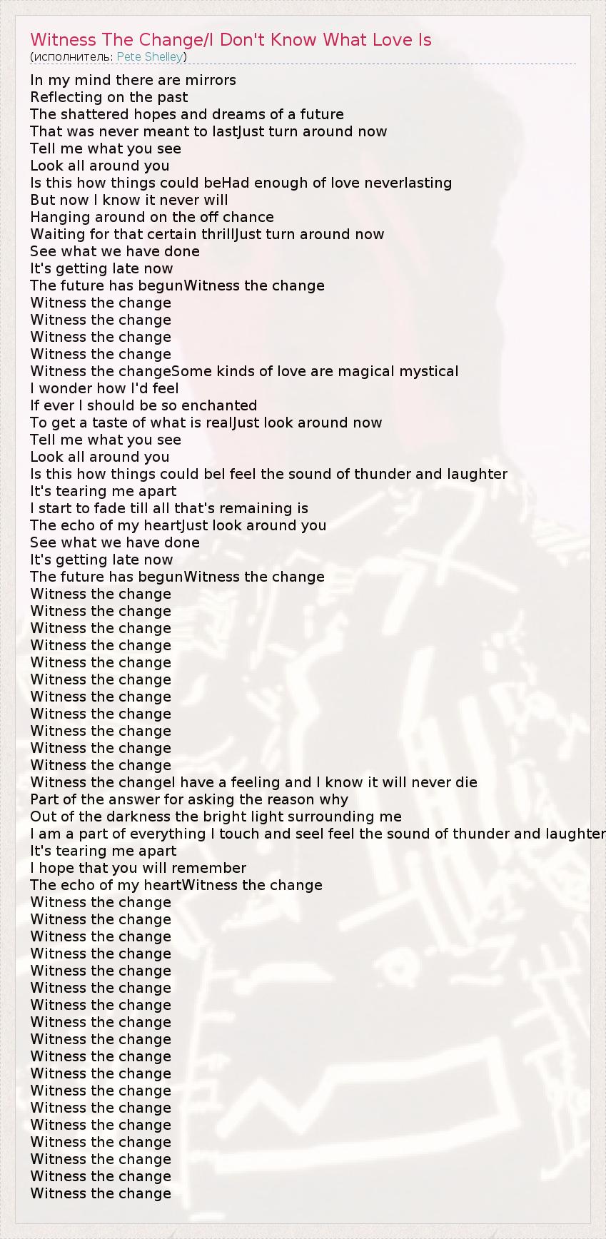 А как ты думаешь, о чем песня "Witness The Change/I Don't Know What Love Is" ?