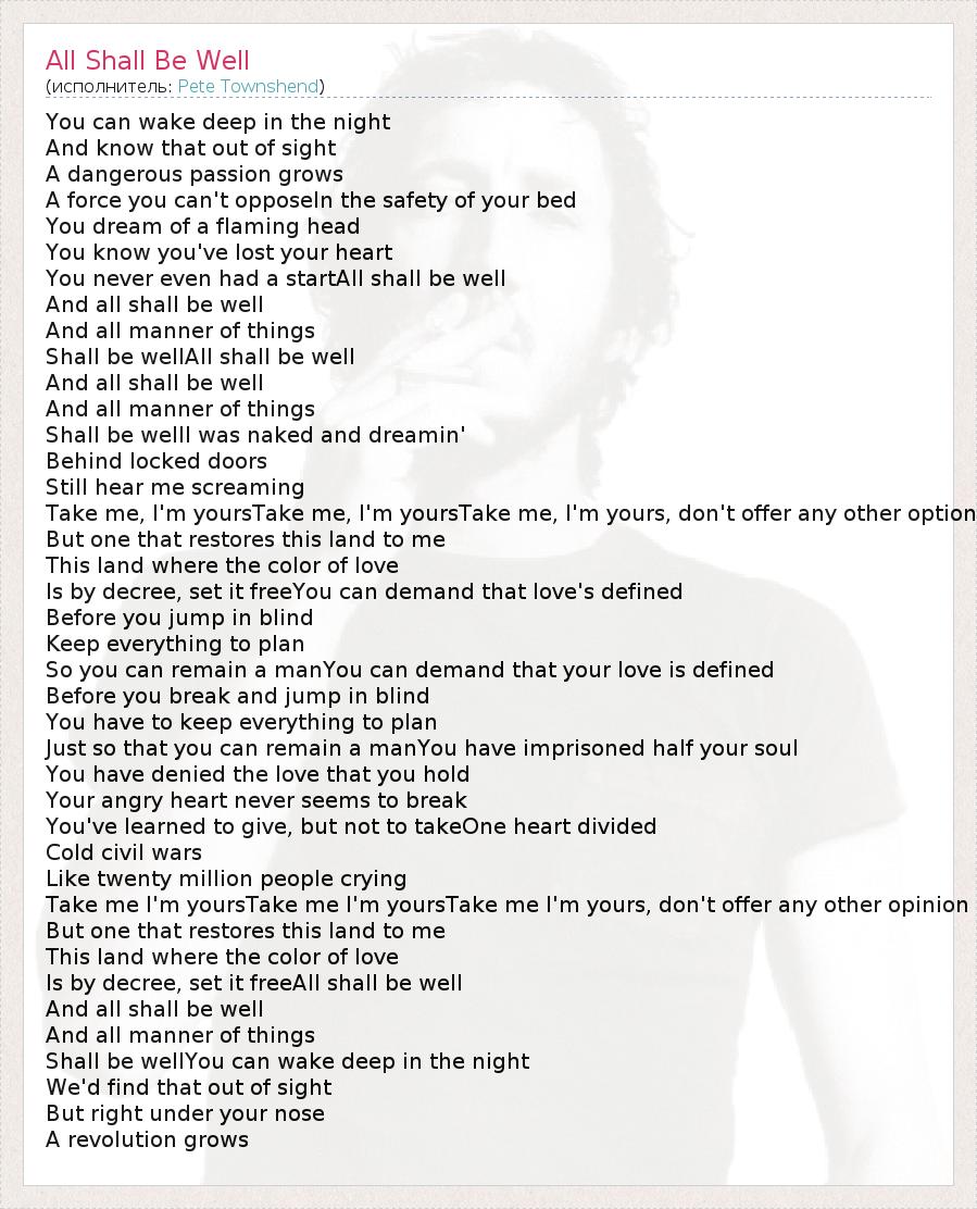А как ты думаешь, о чем песня "All Shall Be Well" ?