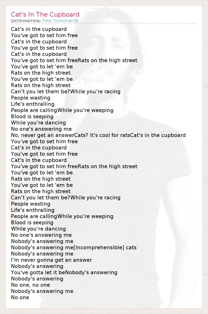 А как ты думаешь, о чем песня "Cat's In The Cupboard" ?