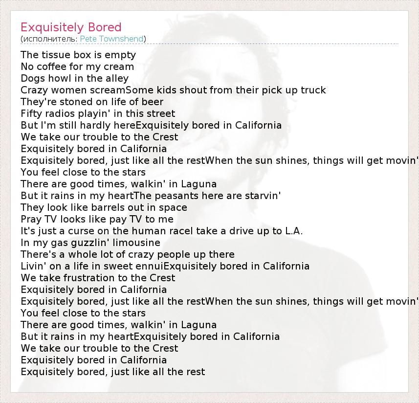 А как ты думаешь, о чем песня "Exquisitely Bored" ?
