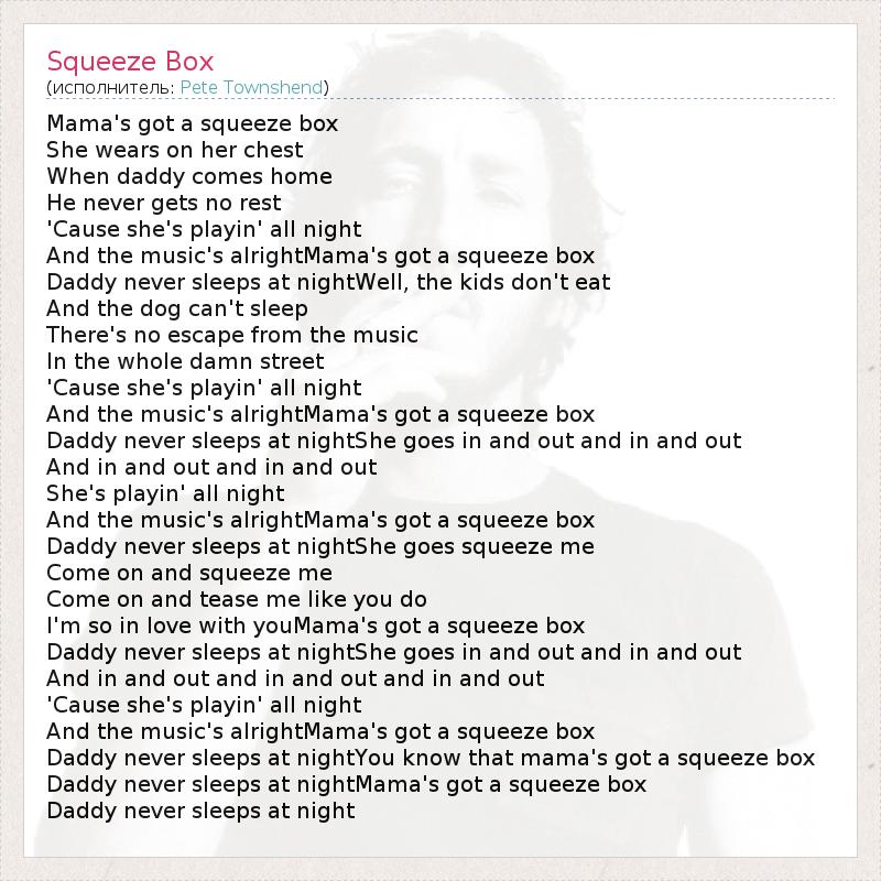 А как ты думаешь, о чем песня "Squeeze Box" ?