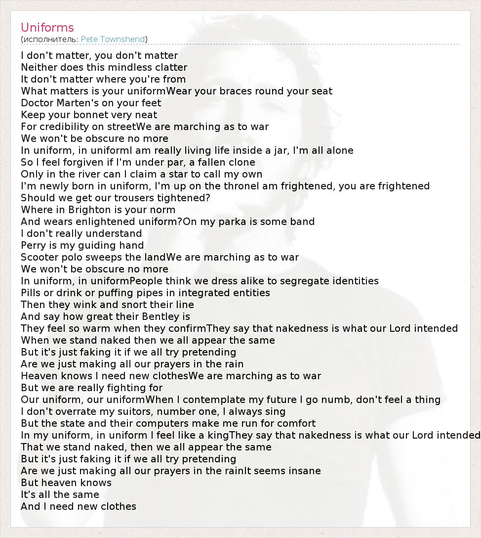 А как ты думаешь, о чем песня "Uniforms" ?