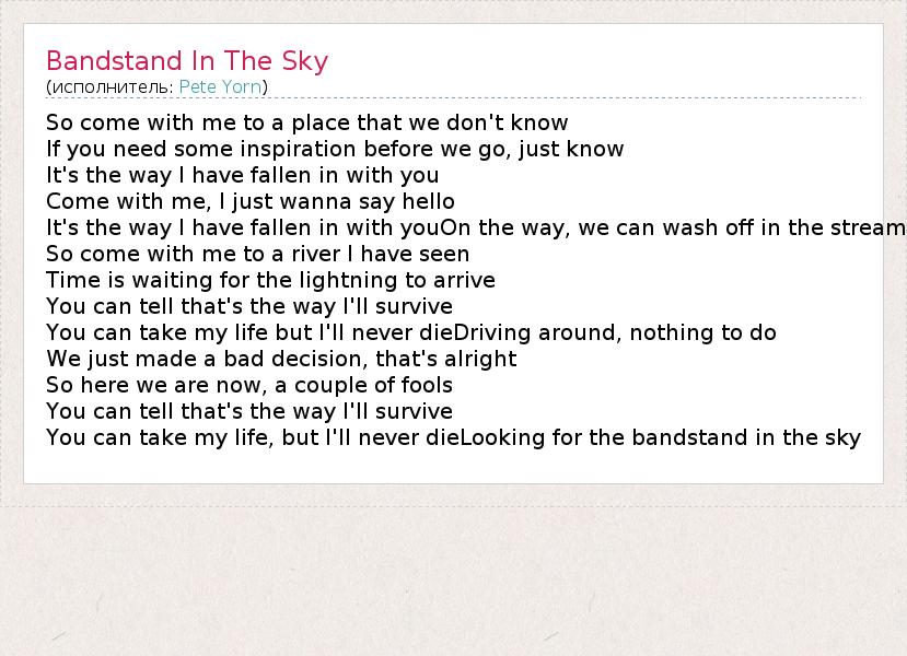 А как ты думаешь, о чем песня "Bandstand In The Sky" ?