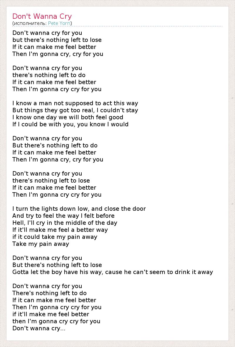 А как ты думаешь, о чем песня "Don't Wanna Cry" ?