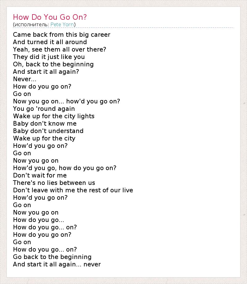 А как ты думаешь, о чем песня "How Do You Go On?" ?