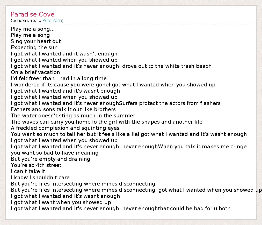 А как ты думаешь, о чем песня "Paradise Cove" ?
