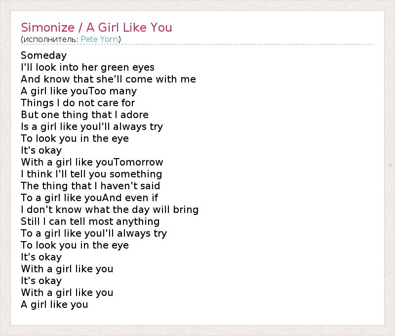 А как ты думаешь, о чем песня "Simonize / A Girl Like You" ?