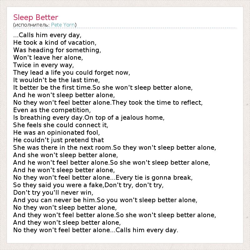 А как ты думаешь, о чем песня "Sleep Better" ?