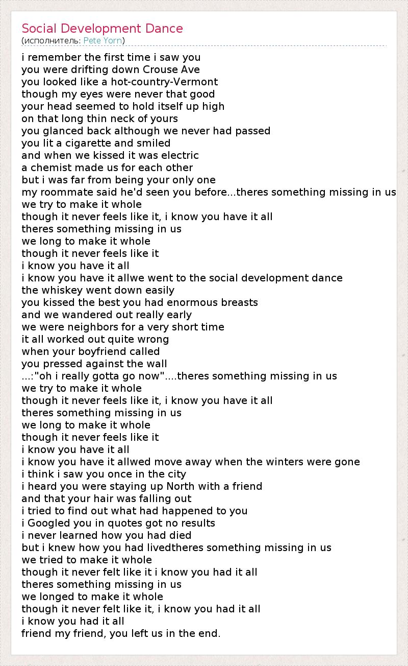 i know you have it allwe went to the social development dance