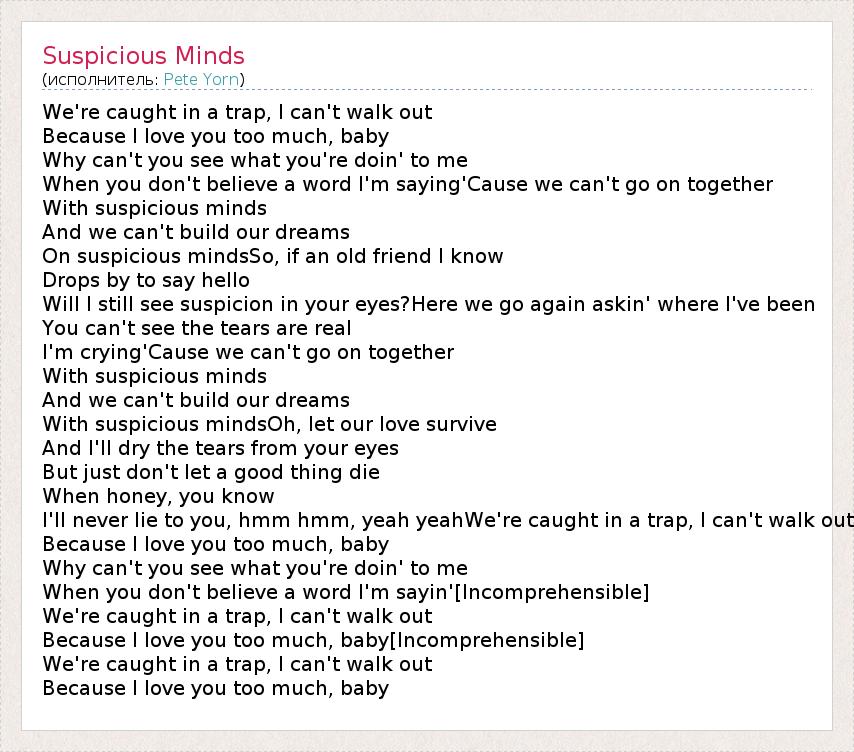 А как ты думаешь, о чем песня "Suspicious Minds" ?