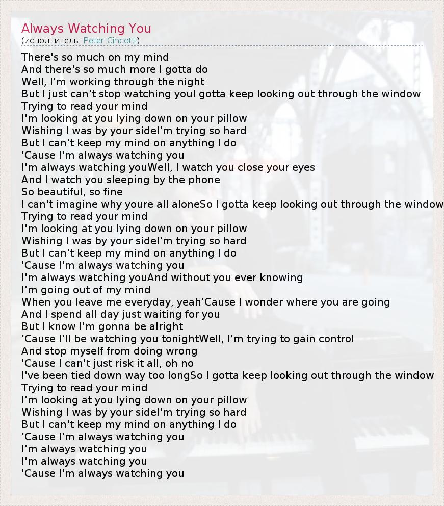 А как ты думаешь, о чем песня "Always Watching You" ?
