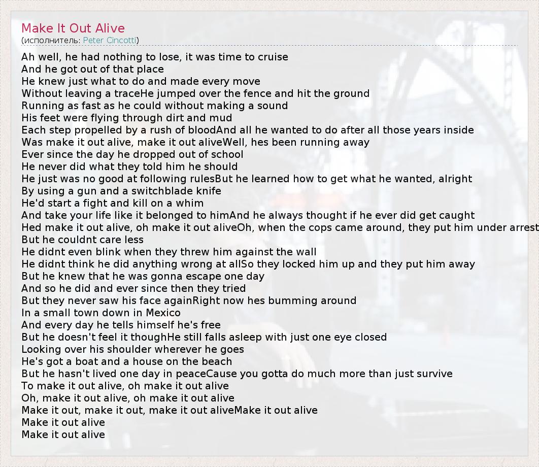 А как ты думаешь, о чем песня "Make It Out Alive" ?