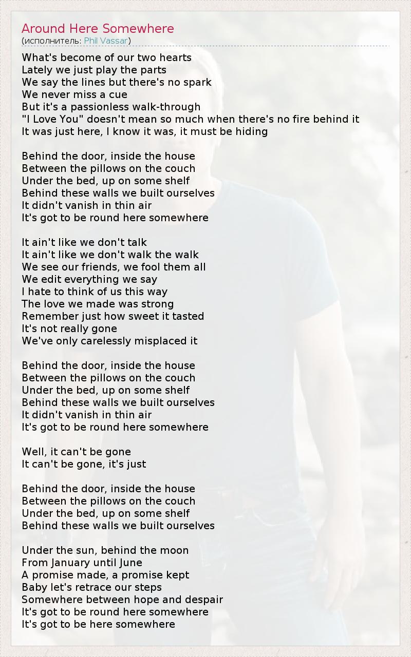 А как ты думаешь, о чем песня "Around Here Somewhere" ?