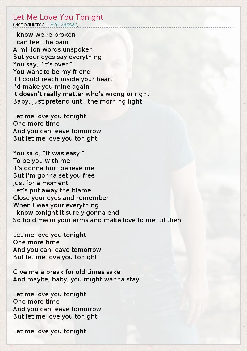 ГлавнаяИсполнителиPhil VassarLet Me Love You Tonight