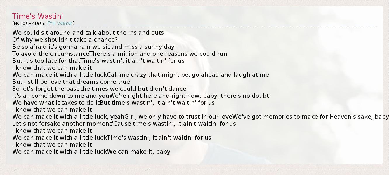 А как ты думаешь, о чем песня "Time's Wastin'" ?
