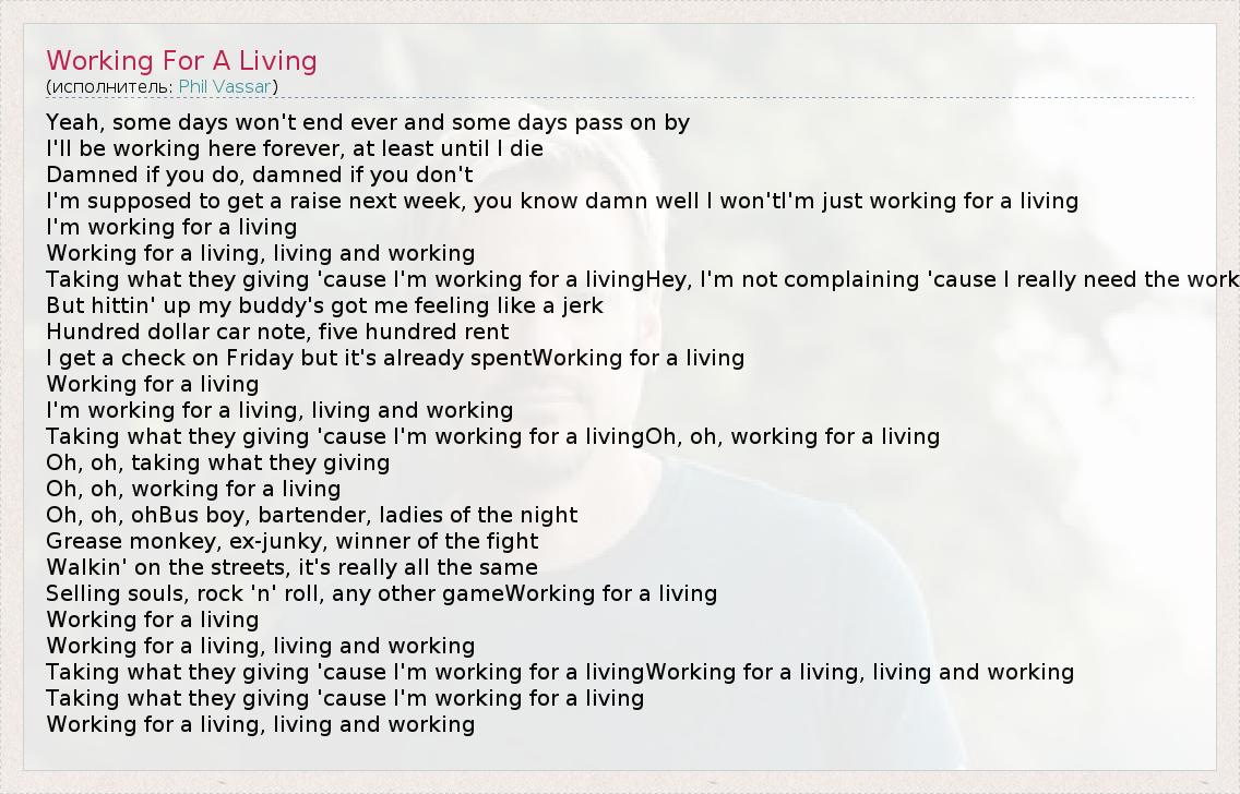 А как ты думаешь, о чем песня "Working For A Living" ?