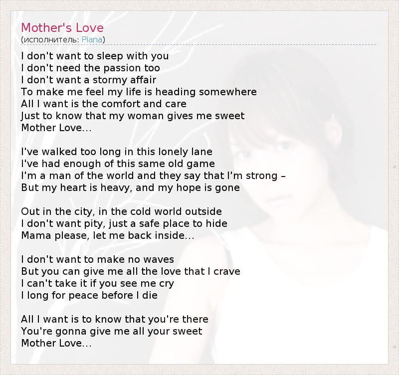 А как ты думаешь, о чем песня "Mother's Love" ?