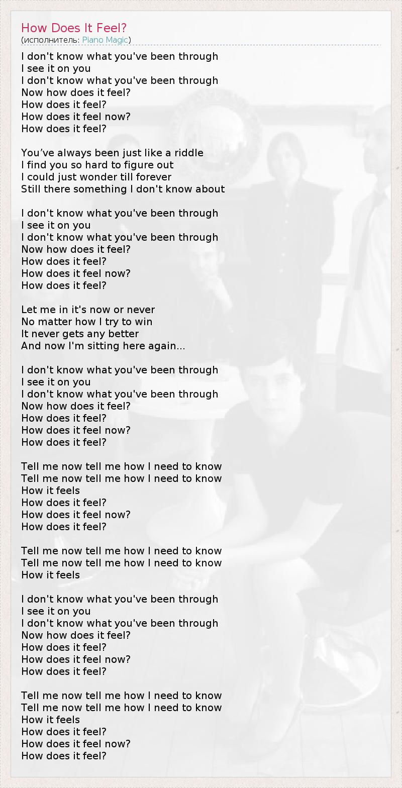 А как ты думаешь, о чем песня "How Does It Feel?" ?
