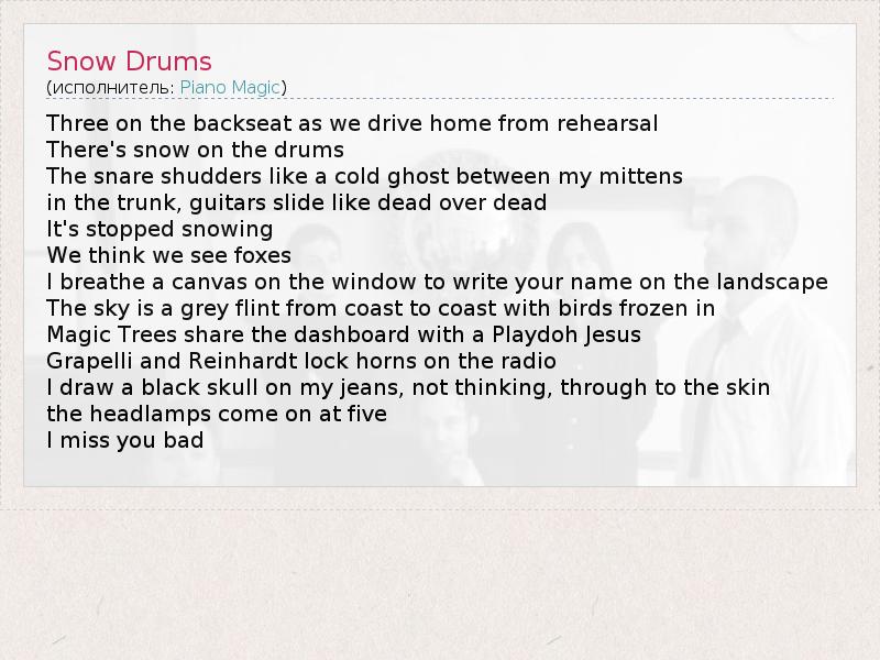 А как ты думаешь, о чем песня "Snow Drums" ?