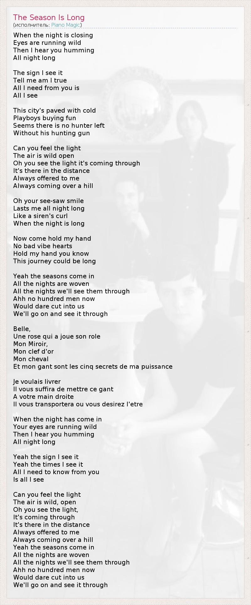А как ты думаешь, о чем песня "The Season Is Long" ?