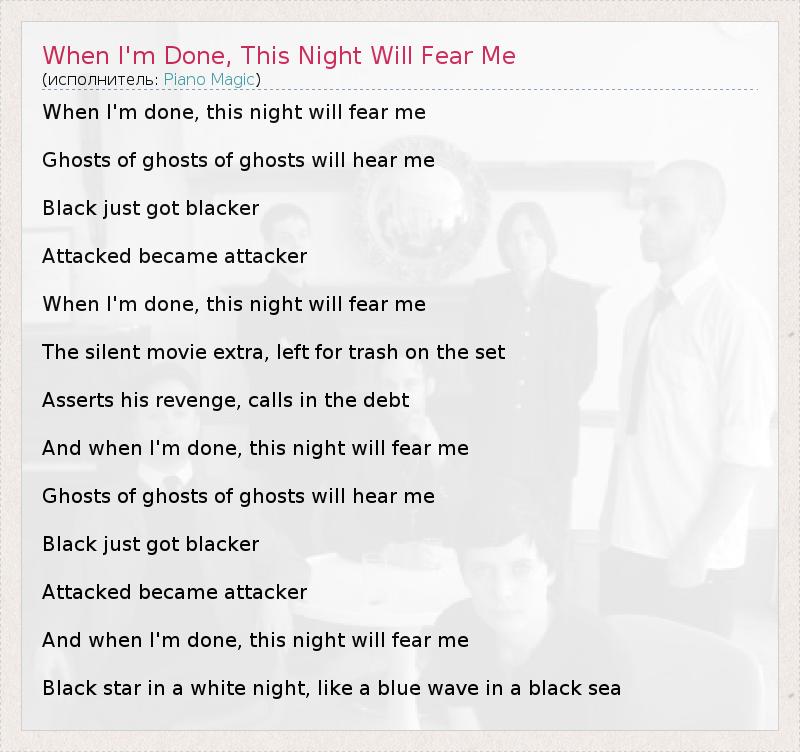 ГлавнаяИсполнителиPiano MagicWhen I'm Done, This Night Will Fear Me