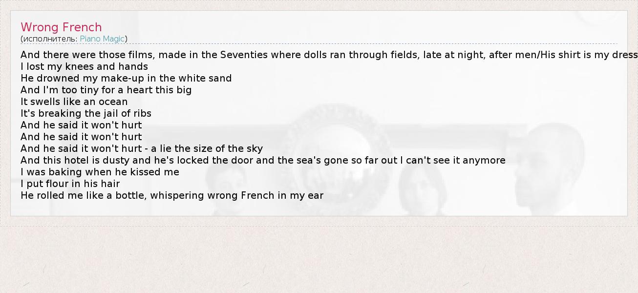 And there were those films, made in the Seventies where dolls ran through fields, late at night, after men/His shirt is my dress