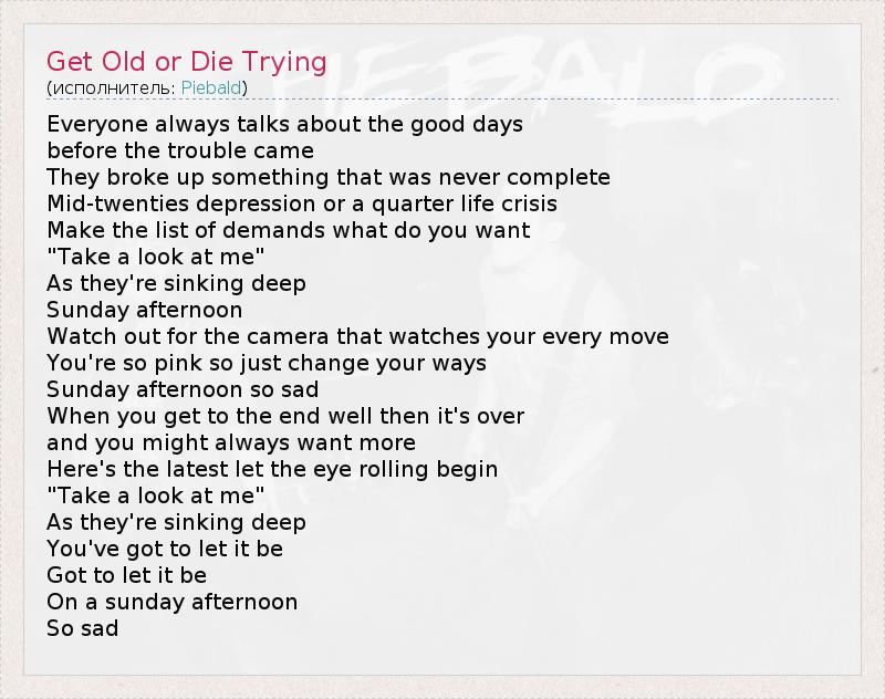 А как ты думаешь, о чем песня "Get Old or Die Trying" ?