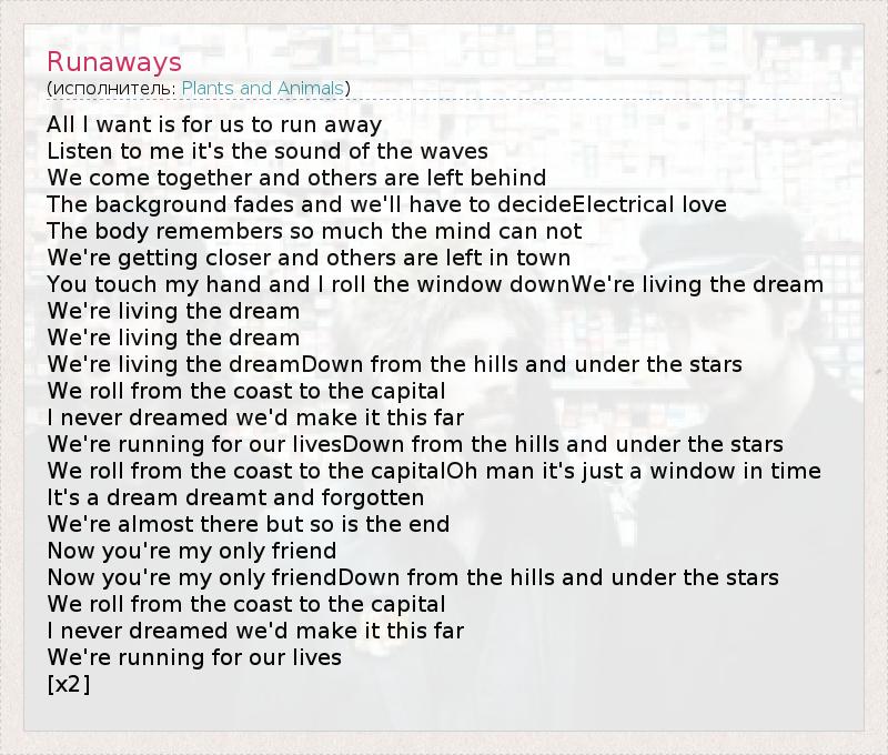 Это интересно:Plants and Animals are a Canadian indie-rock band from Montreal (featuring two members originally from Halifax, Nova Scotia) which comprises guitarist-vocalists Warren Spicer and Nic Basque and drummer-vocalist Matthew Woody Woodley. They often describe their music as post-classic rock. They are signed to Secret City Records. Their first full-length album, Parc Avenue, was shortlisted for the 2008 Polaris Music Prize and nominated for a 2009 Juno Award for Alternative Album of the Year. Plants and Animals were also given a 2009 Juno nomination for Best New Band.