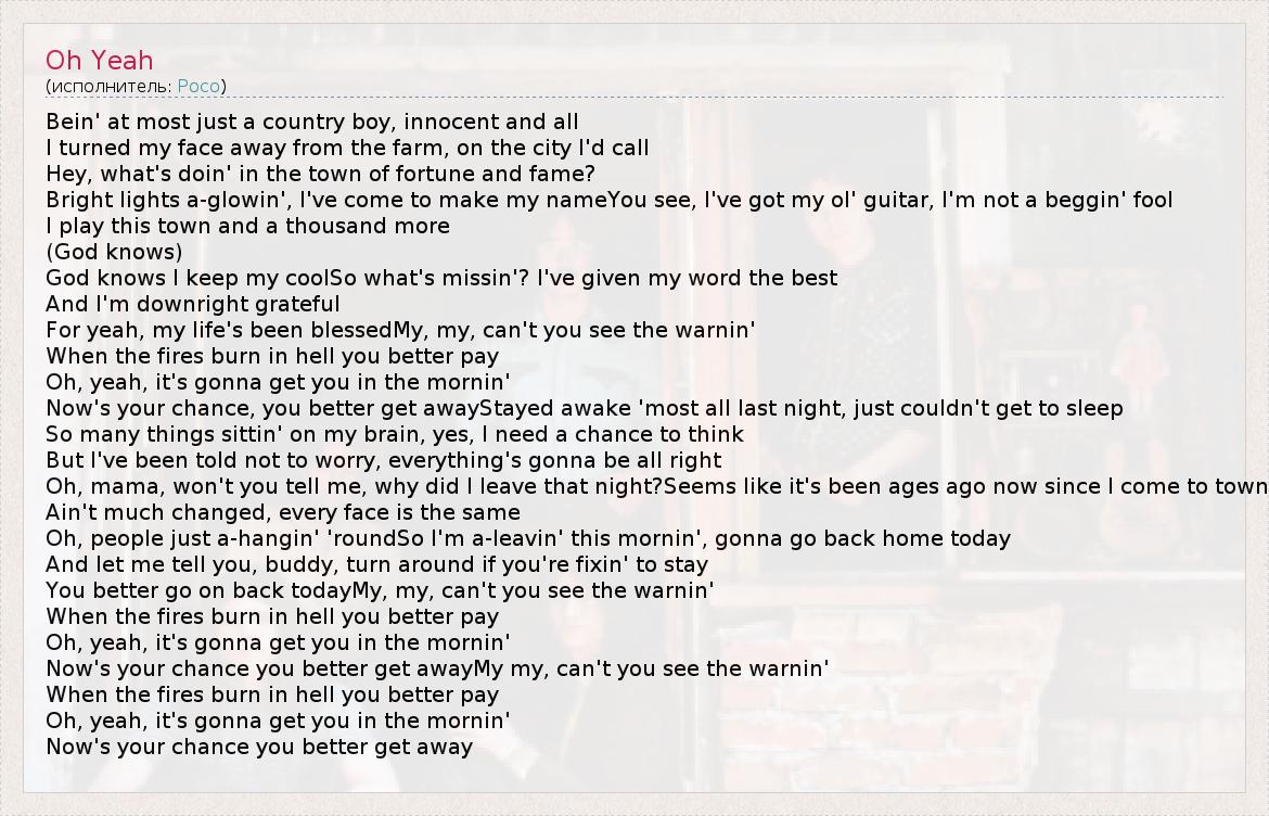 А как ты думаешь, о чем песня "Oh Yeah" ?