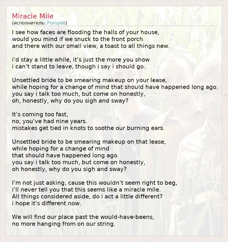 А как ты думаешь, о чем песня "Miracle Mile" ?