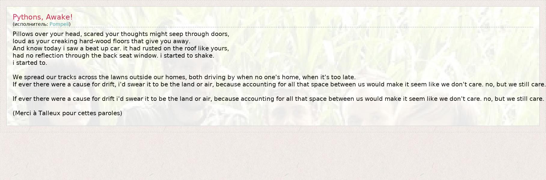 А как ты думаешь, о чем песня "Pythons, Awake!" ?