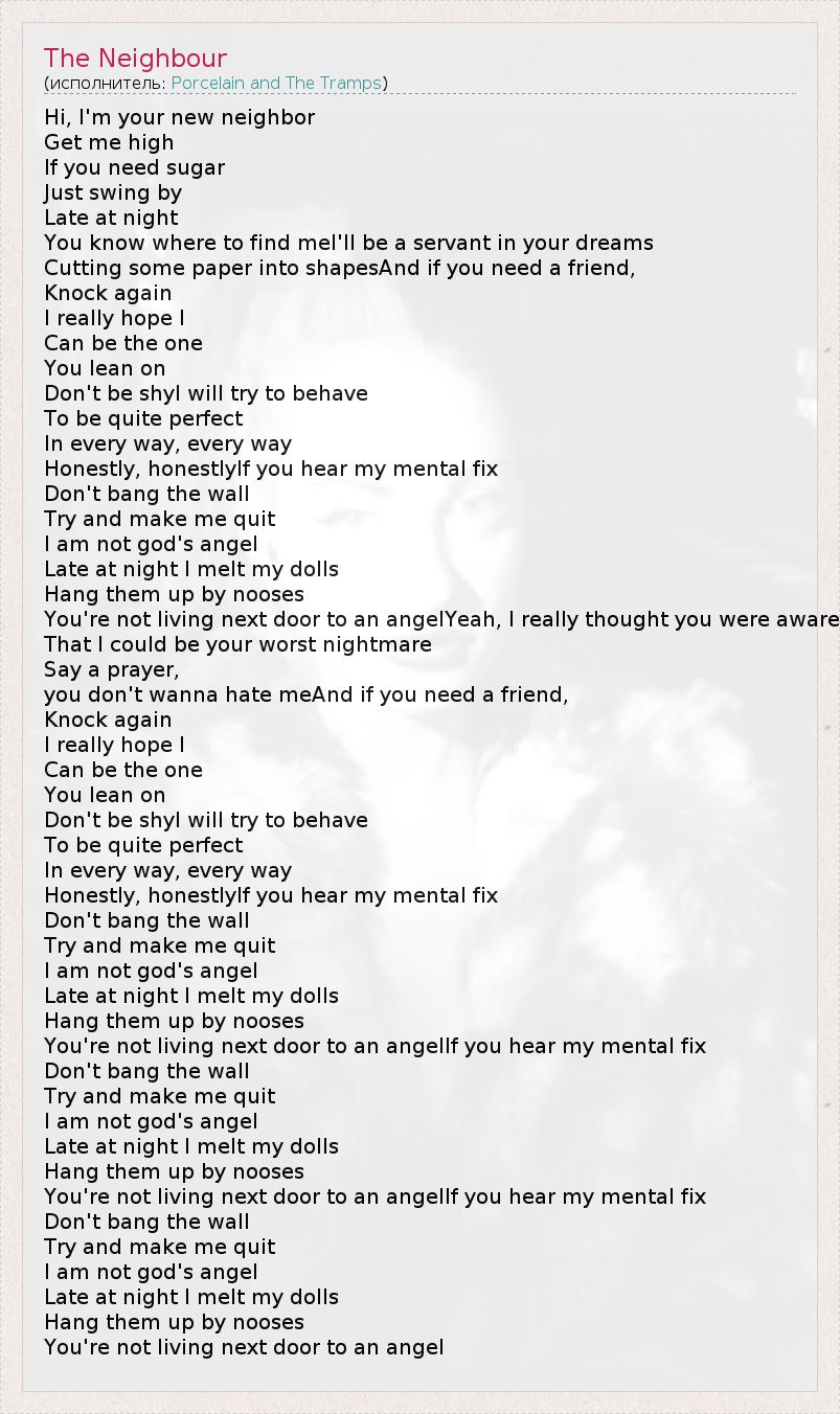 А как ты думаешь, о чем песня "The Neighbour" ?