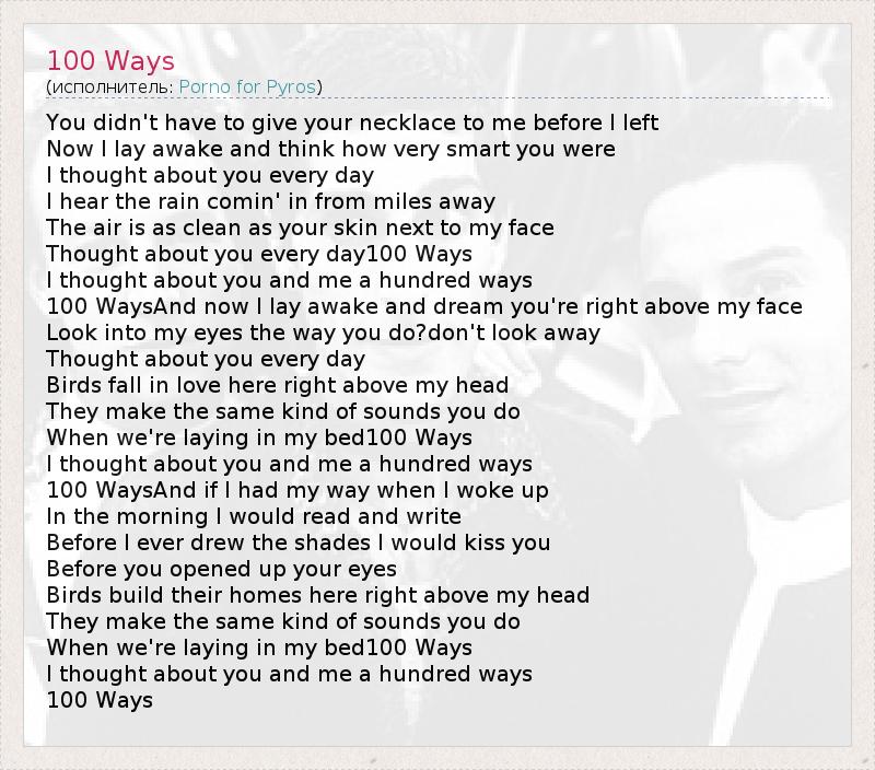 А как ты думаешь, о чем песня "100 Ways" ?