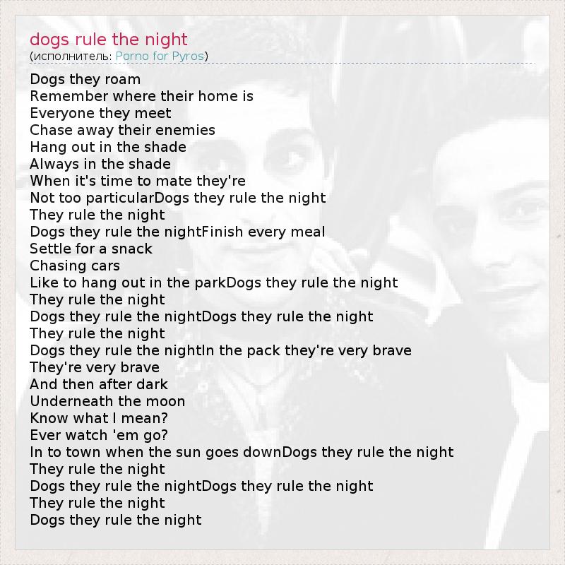 А как ты думаешь, о чем песня "dogs rule the night" ?