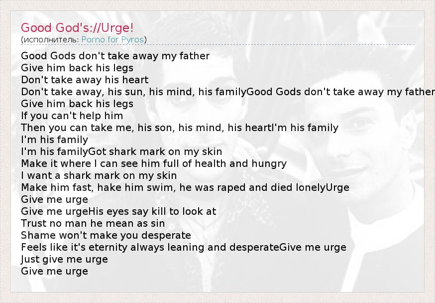 А как ты думаешь, о чем песня "Good God's://Urge!" ?