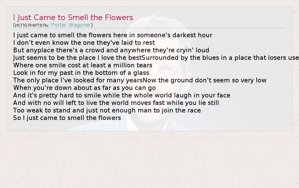 А как ты думаешь, о чем песня "I Just Came to Smell the Flowers" ?