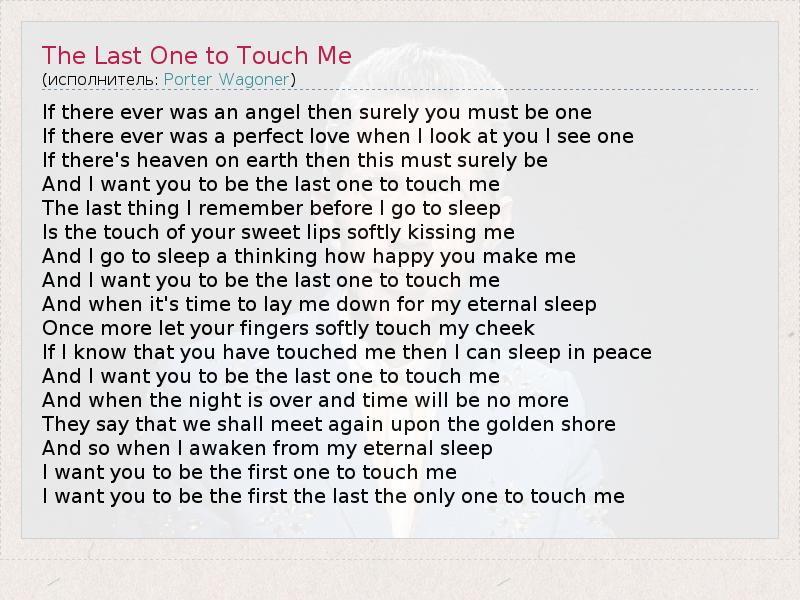 А как ты думаешь, о чем песня "The Last One to Touch Me" ?