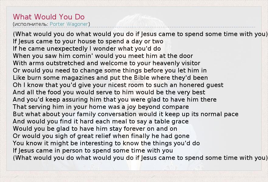 А как ты думаешь, о чем песня "What Would You Do" ?